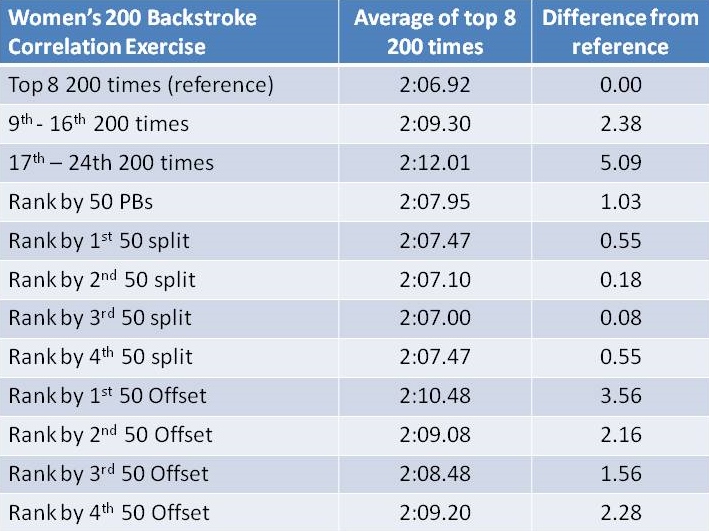 1) What are the different ways in which the elite 24 swimmers swim the 200 backstroke? It’s more or less divided into those swimmers who are sprint-oriented, endurance-oriented, and in-between.